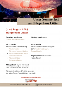 « Alle Veranstaltungen Diese Veranstaltung hat bereits stattgefunden. Unser Sommerfest am Bürgerhaus 3 August - 4 August « Feuerwehrfest Lütter Oktoberfest der Stadtkapelle Schlüchtern » Zum Kalender hinzufügen Google Kalender iCalendar Outlook 365 Outlook Live Details Beginn: 3 August Ende: 4 August